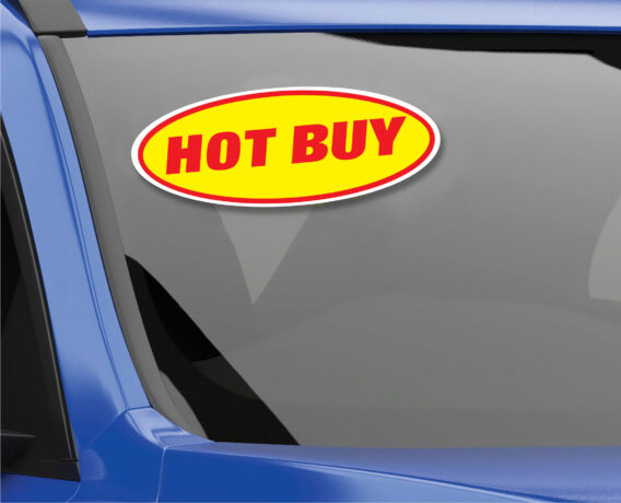 For a change of pace in feature stickers, use these colorful oval stickers printed in blue or red on bright yellow vinyl. These window stickers are great for bringing attention to the vehicles on your New or Used Car Lot. For outside window application. Available for immediate shipment. CLICK HERE to order DS-212 Storage Box to keep your stickers organized and ready for use!